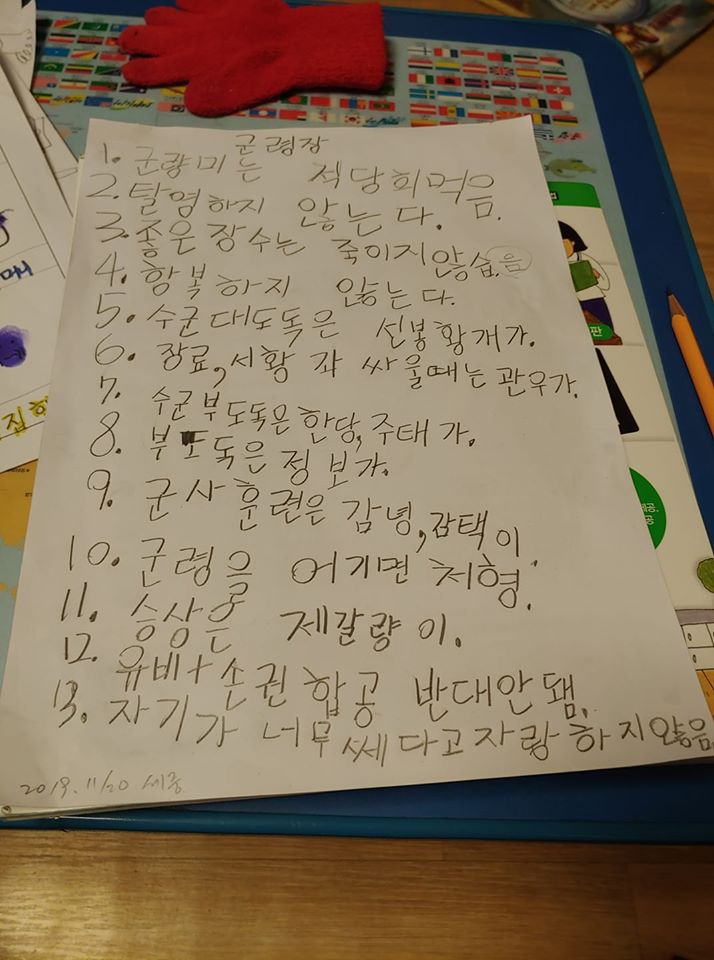 큰 애가 어린이 삼국지 보다가 적어놓은 군령장. 혼자 보기 아깝다..