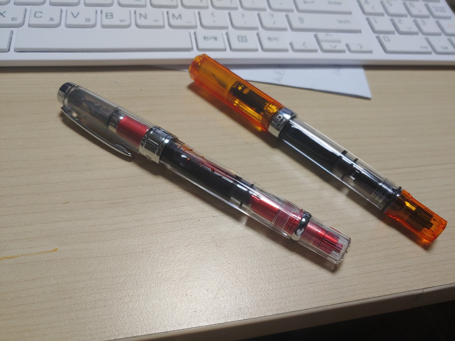 빨간색 만년필 하나 새로 샀다. 빨갱이 책 쓴 기념으로.. 는 아니고. 주황색 잉크를 주로 썼는데, 이제 눈이 나빠져서 주황색으로 쓰면 안 보인다. 펜촉을 그래도 f 정도로 썼는데, 처음으로 m을 골랐다. 하따, 엄청 두껍다. 사실 제일 선호하는 건 모나미 빨간색 잉크인데, 이걸로 사인하면 이름 빨간색으로 쓴다고 질색하는 사람들이 가끔 있어서.. 주황색으로. 독자 사인용으로 만년필 하나 새로 샀다고 생각하려고. (전에 쓰던 주황색 만년필에는, 주황색이 보이지가 않아서 그냥 잘 보이는 검은색 넣고 쓰는 중. 검은색으로 글씨 쓸 때마다, 왠지 자존심에 스크래치 가는 느낌이 든다.)