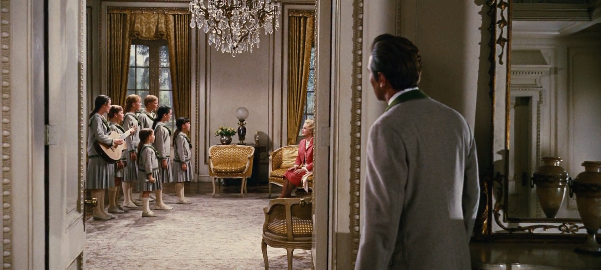 중간 넘어가는 데에 남작 부인 앞에서 폰트랩가 자녀들이 사운드 오브 뮤직 노래부르는 장면이 나온다. 내가 본 것은 요 바로 앞에서 대령이 마리아에게 성당으로 돌아가라고 한 데서부터다.