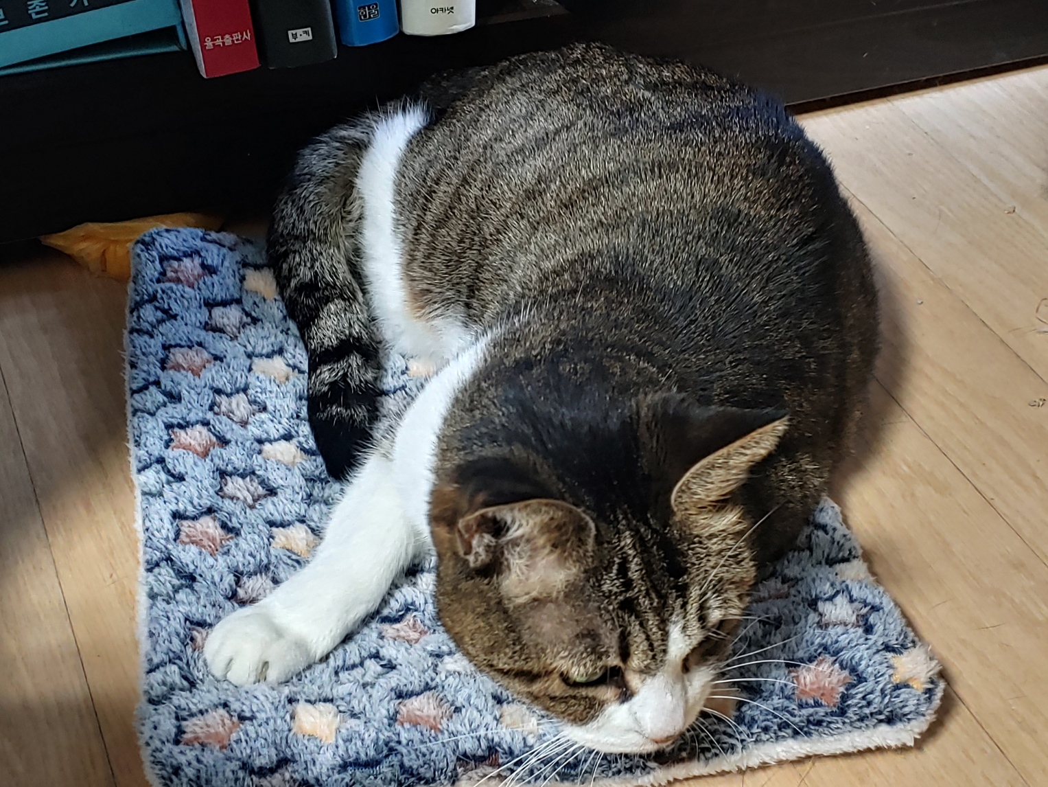 두 달쯤 전에 캣타워가 너무 낡아서, 골판지로 된 스크래처로 바꿔줬다. 아내 의견이었다. 그랬더니 야옹구가 누워 있을 데가 없어서 급하게 좀 큰 쿠션을 사줬다. 개, 고양이 겸용이라고 되어 있는데, 전혀 사용을 안 했다. 잘 보니까 뜨게질 한 털이 발톱에 걸린다. 몇만 원 바로 다이. 그리고 극세사로 된 다른 깔개를 바로 주문했다. 쓸지 안 쓸지 몰라서, 좀 작은 걸로.
