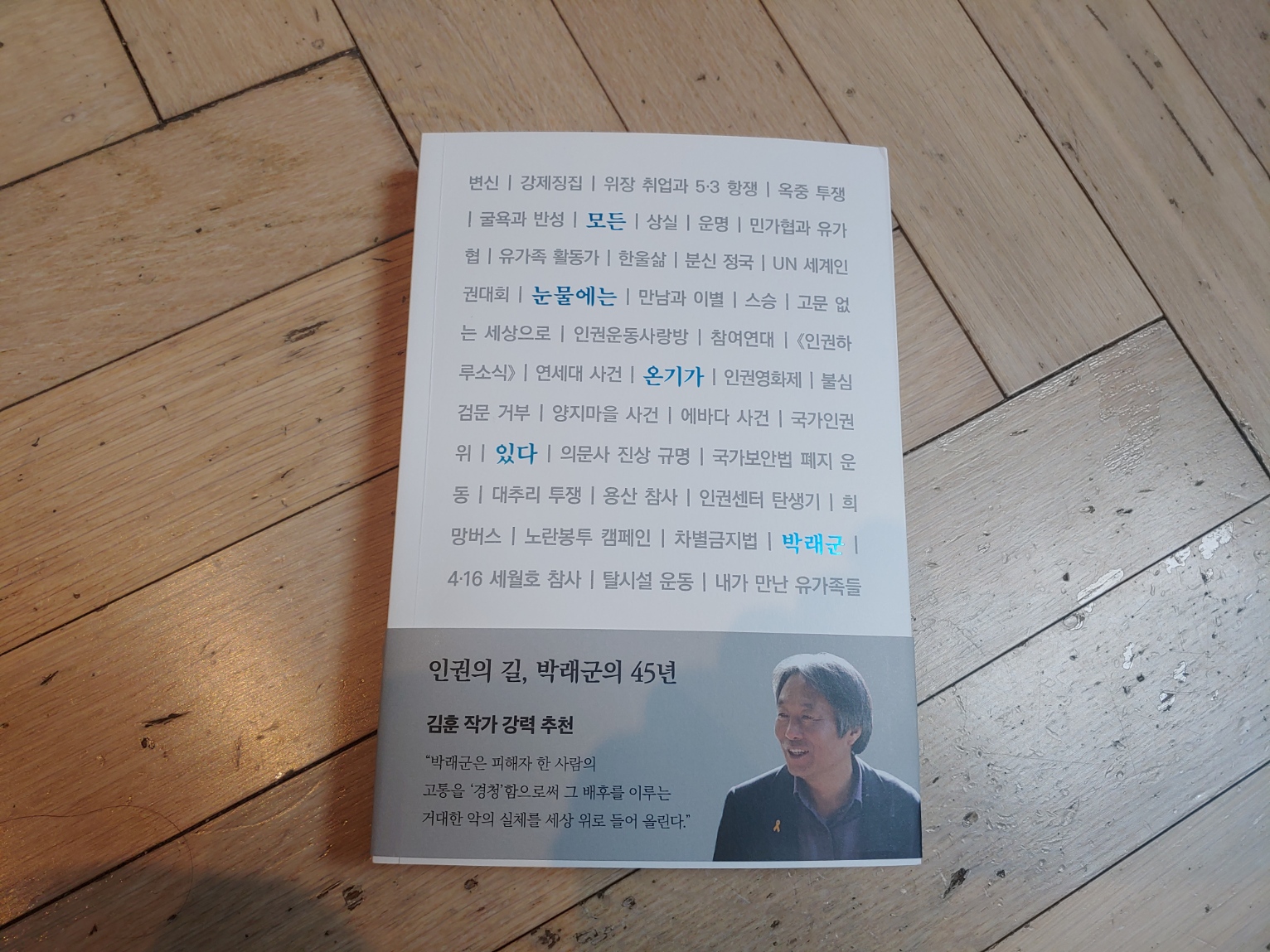 박래군의 인생을 보면, 나는 너무 대충 살았다는 생각을 감추기 어렵다. 그렇게 진지한 적도 없고, 그렇게 충실한 적도 없었다. 내가 한 가지 그보다 잘 한 게 있다면, 웃음이 주변에서 떨어지지 않도록 노력한 정도 아니겠나 싶다. 명랑하려고 늘 노력을 했고, 그래서 웃음이 사라지지 않는 인생을 살려고 했다.